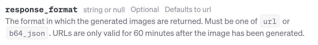 해당 API 설명에 따르면 response_format에 url 또는 b64_json을 넣어 응답 객체를 선택할 수 있는데, 이를 기반으로 Image 클래스가 설계된 것 같습니다.